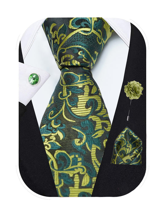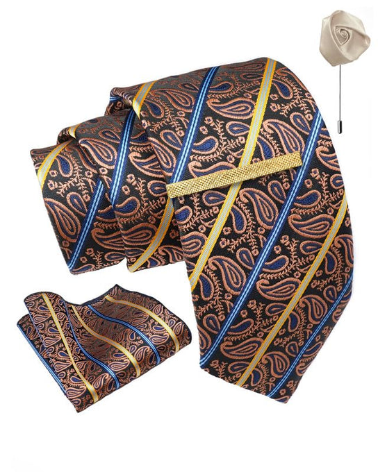 AXLON Formal/Casual Printed Polyester Necktie Set with Pocket Square, Brooch Pin and Cufflinks for Men