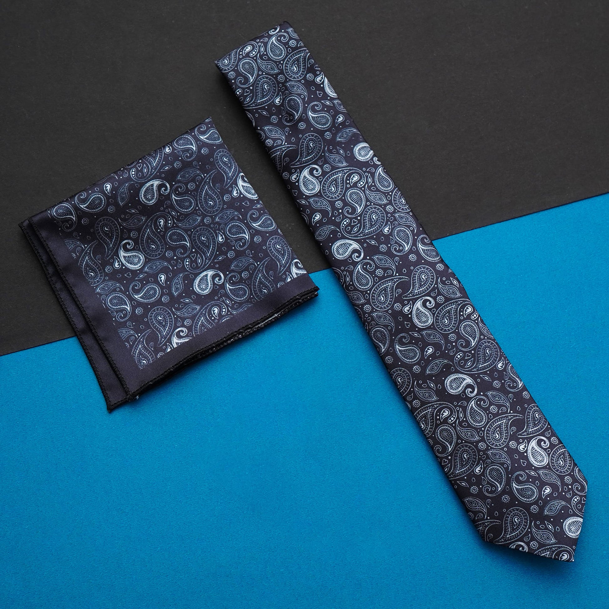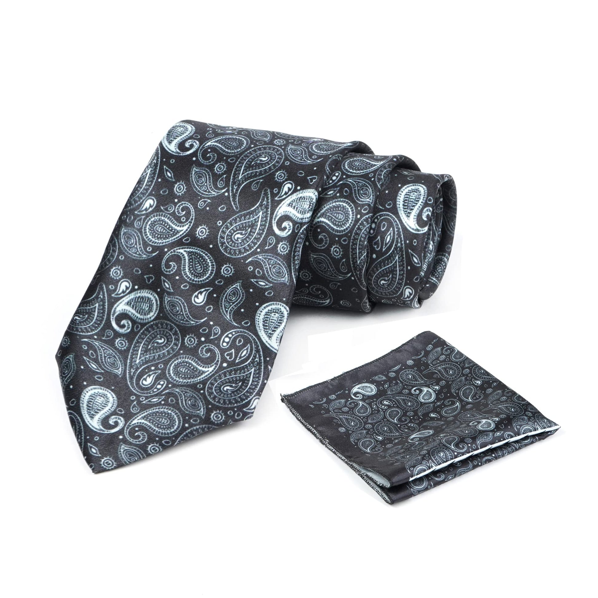 Axlon Mens Printed Silk Necktie Set With Panel Print Pocket Square Ties For Men Formal FDAX_PN1