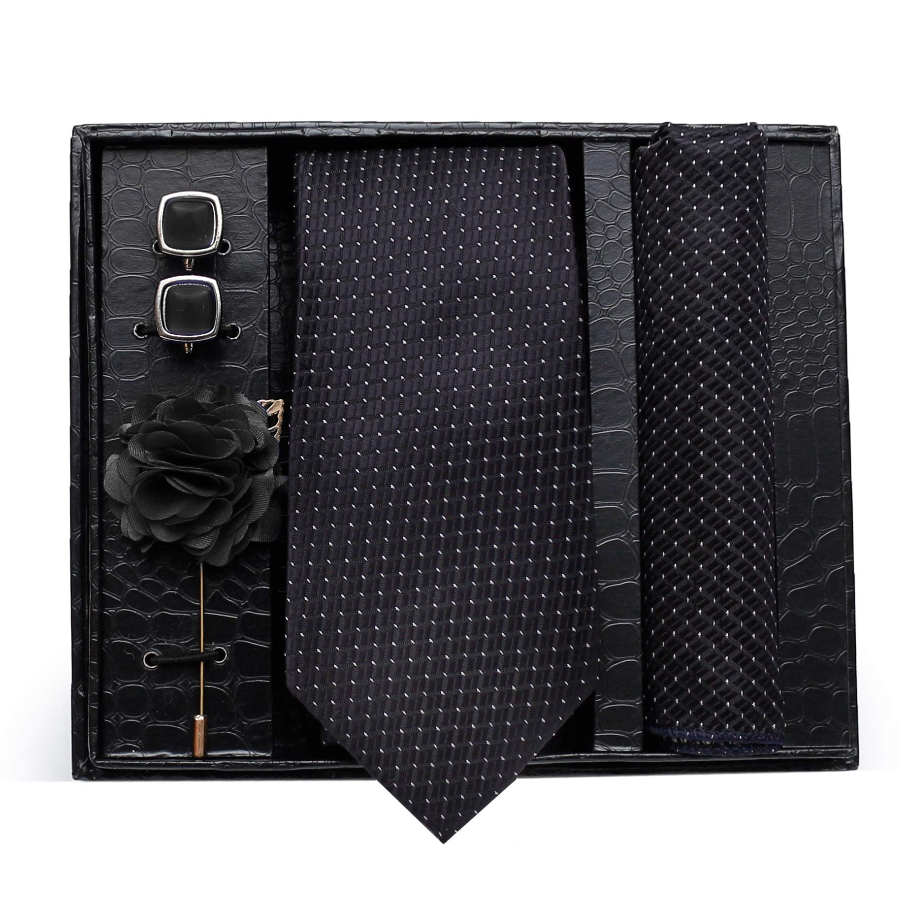 AXLONFormal/Casual Printed Polyester Necktie Set with Pocket Square, Brooch Pin and Cufflinks for Men