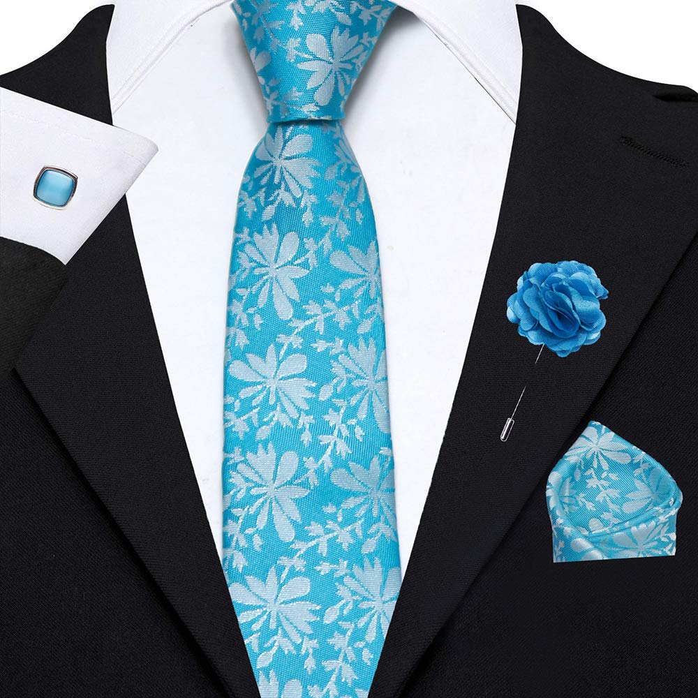 AXLON Men's Micro Polyester Casual Formal Floral Printed Design Necktie Set with Pocket Square, Brooch Pin and Cufflinks (Free Size)