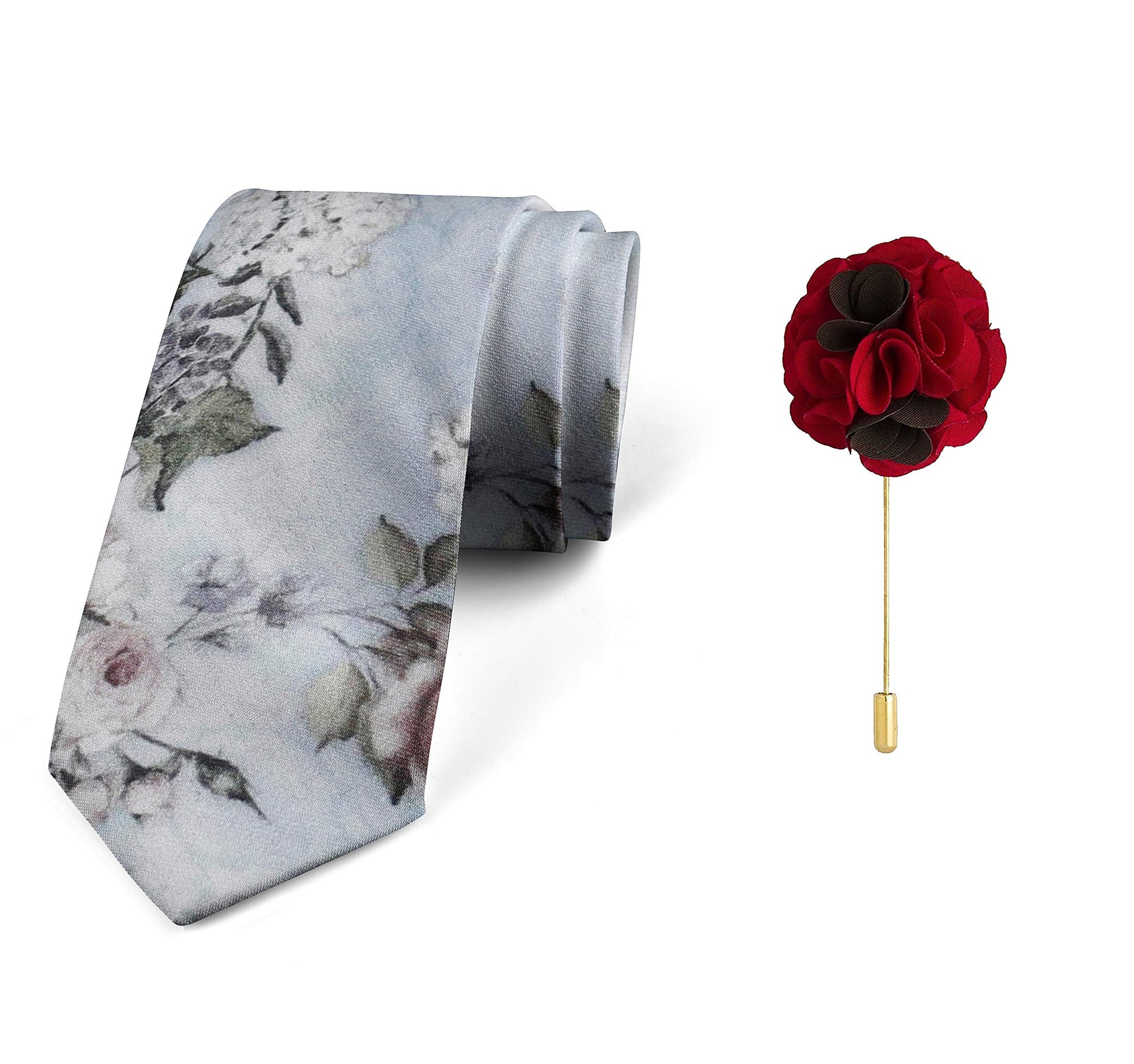 AXLON Men's Micro Polyester Floral Necktie Set with Pocket Square and Brooch Pin (Blue ,Free Size)