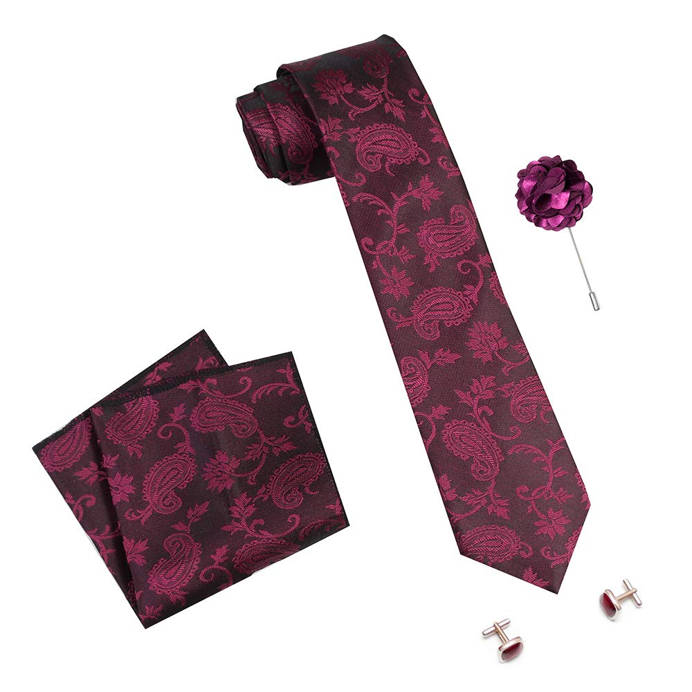 AXLONMen's Micro Polyester Casual Formal Printed Necktie Set with Pocket Square, Brooch Pin and Cufflinks (Free Size)