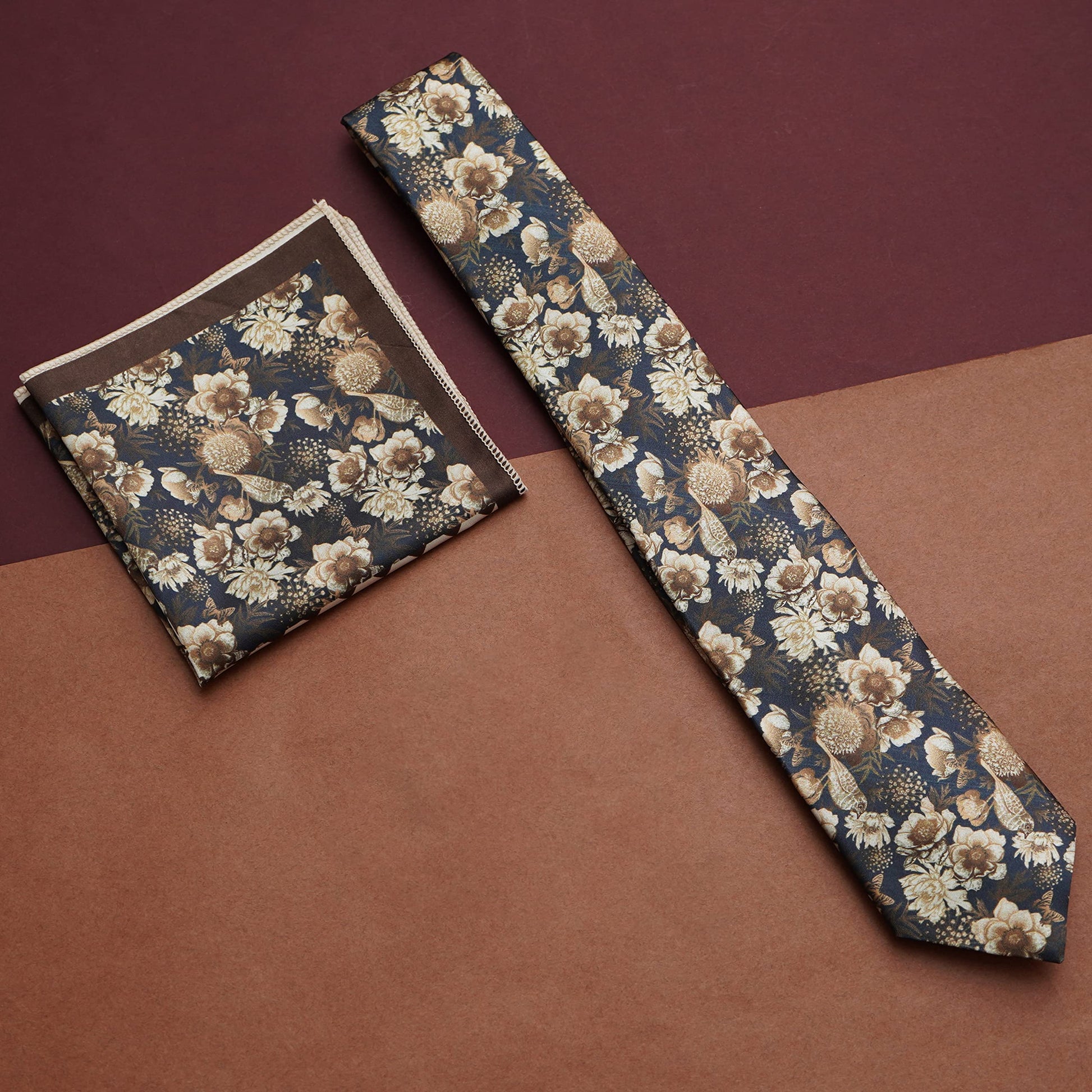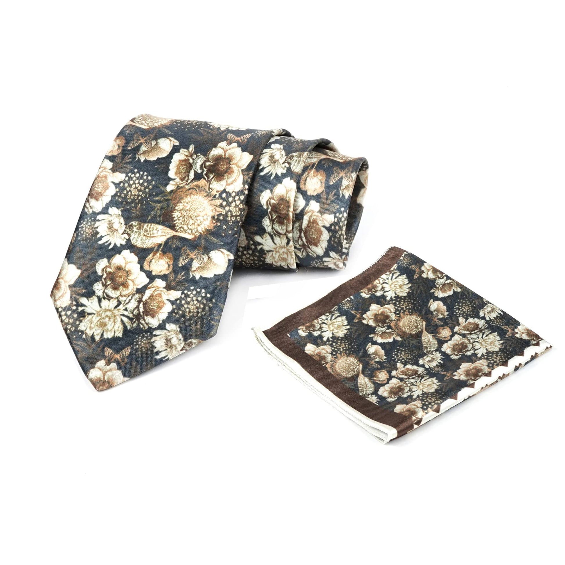 Axlon Mens Printed Silk Necktie Set With Panel Print Pocket Square Ties For Men Formal FDAX_PN1
