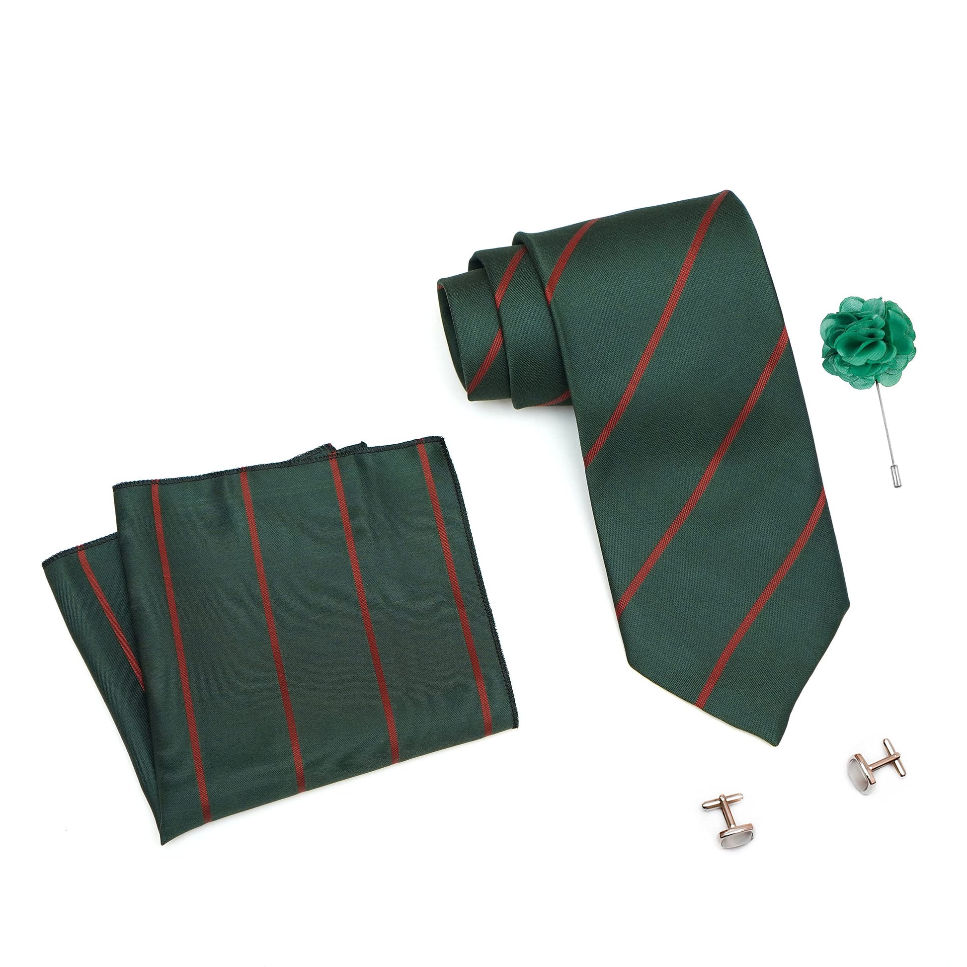 RIZORO Mens Plaid Stripped Silk Necktie Gift Set With Pocket Square Cufflinks & Brooch Pin Formal Tie With Leatherite Box (S2RX Free Size) | (Leather Gift Box) (Pack of 4)