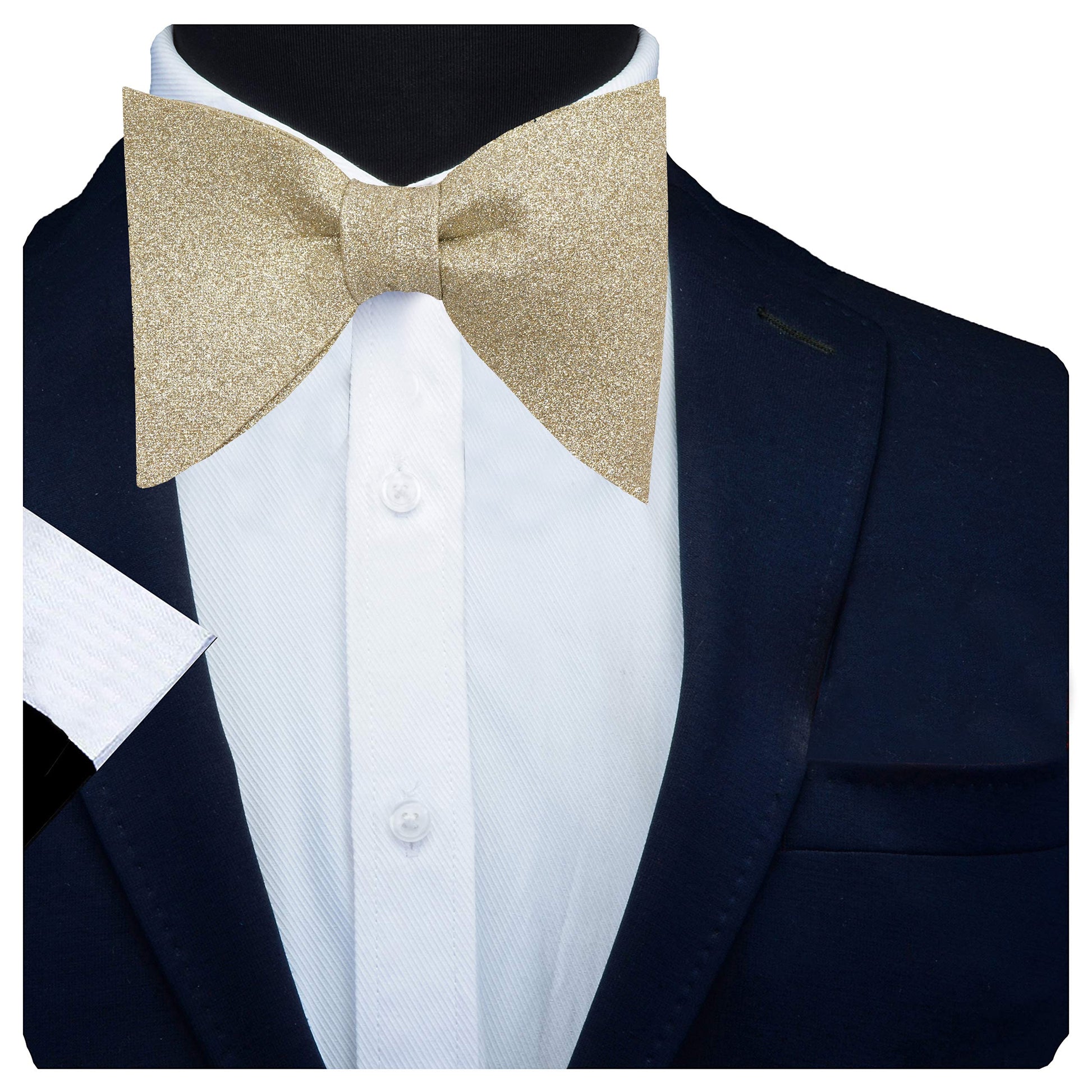 RIZORO Mens Oversize Butterfly Pretied Suede Sparkle Adjustablke Bow Tie For Men (Shimmer-Golden)