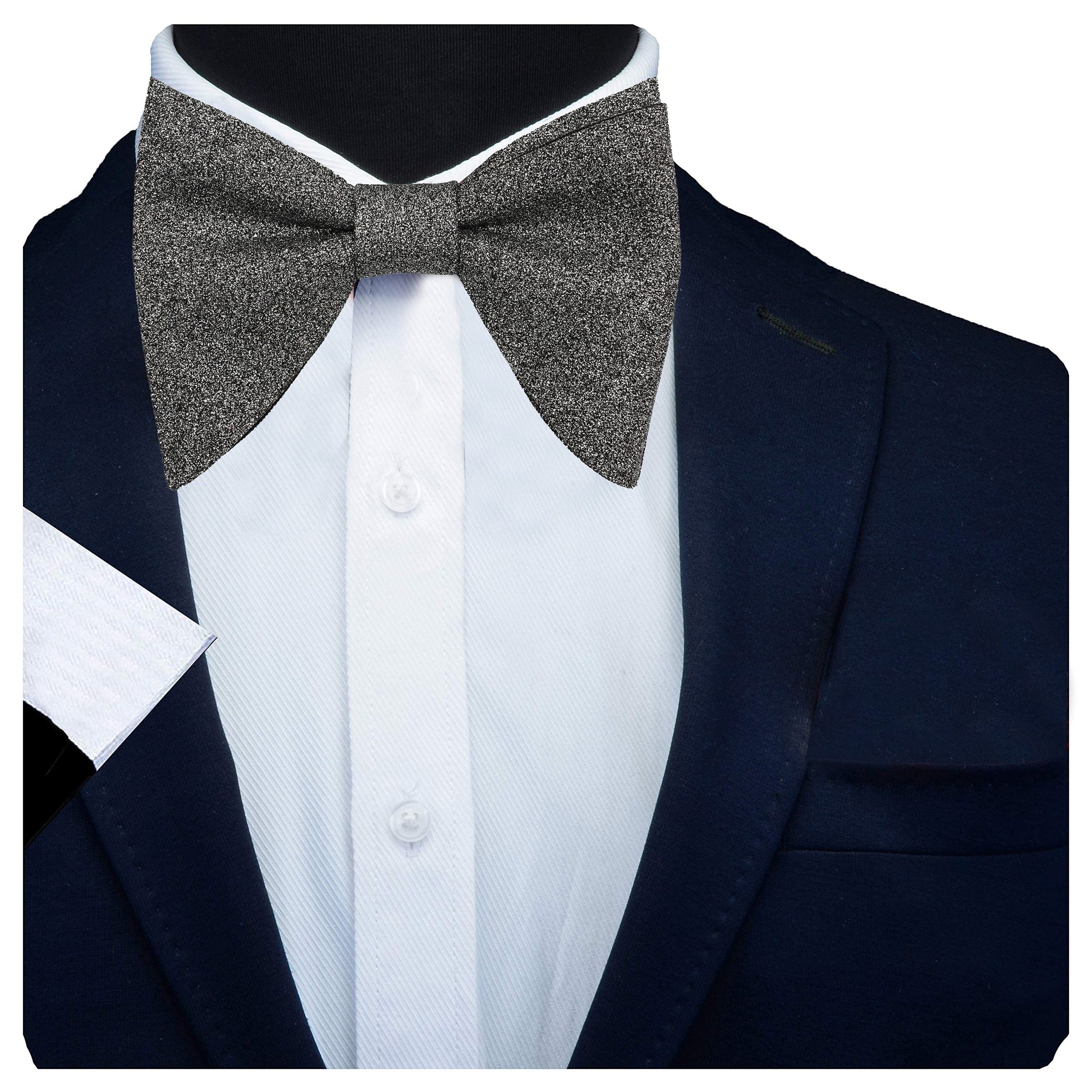 RIZORO Mens Oversize Butterfly Pretied Suede Sparkle Adjustablke Bow Tie For Men (Shimmer-Grey)
