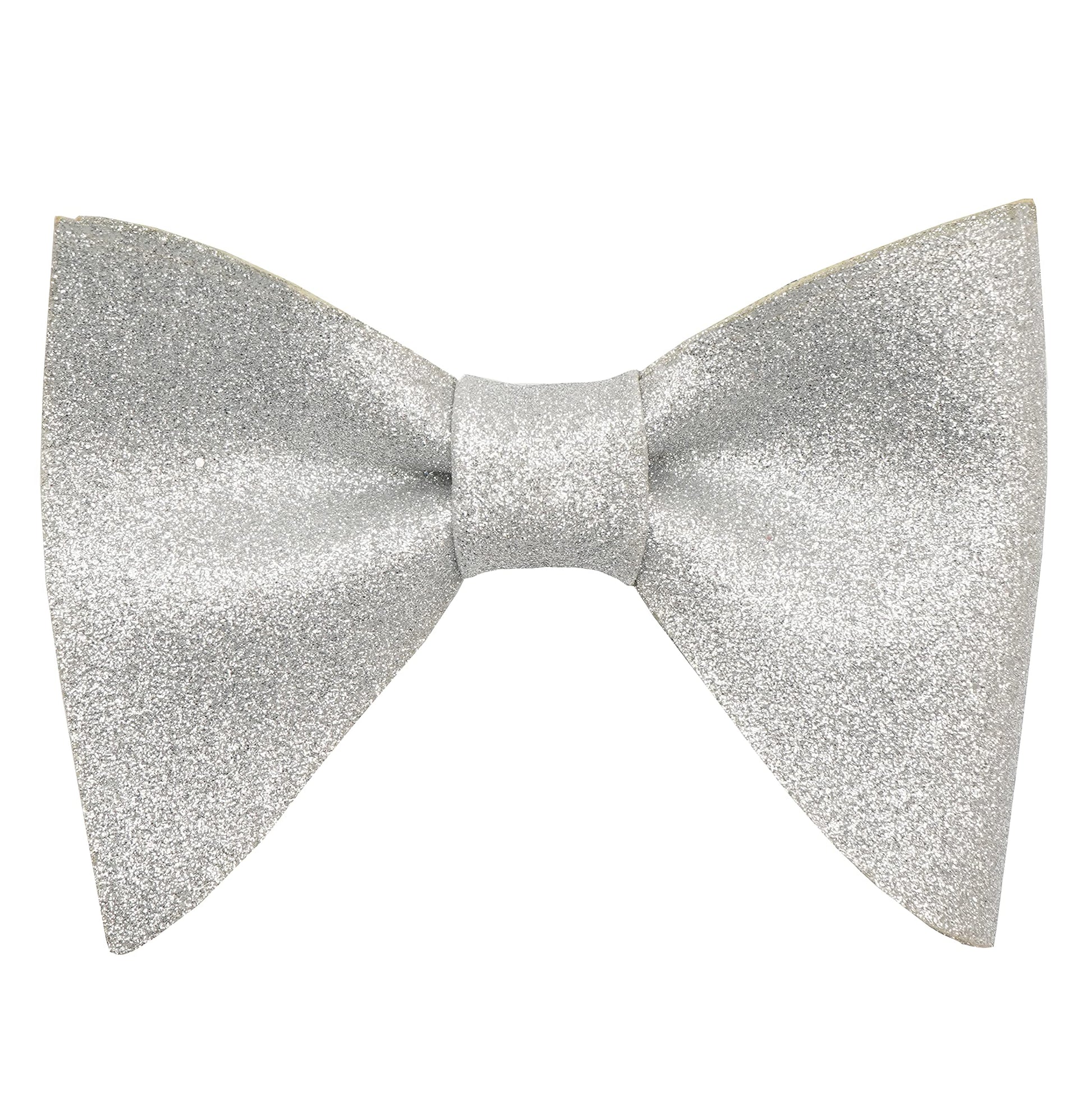 RIZORO Mens Oversize Butterfly Pretied Suede Sparkle Adjustablke Bow Tie For Men (Shimmer-Silver)