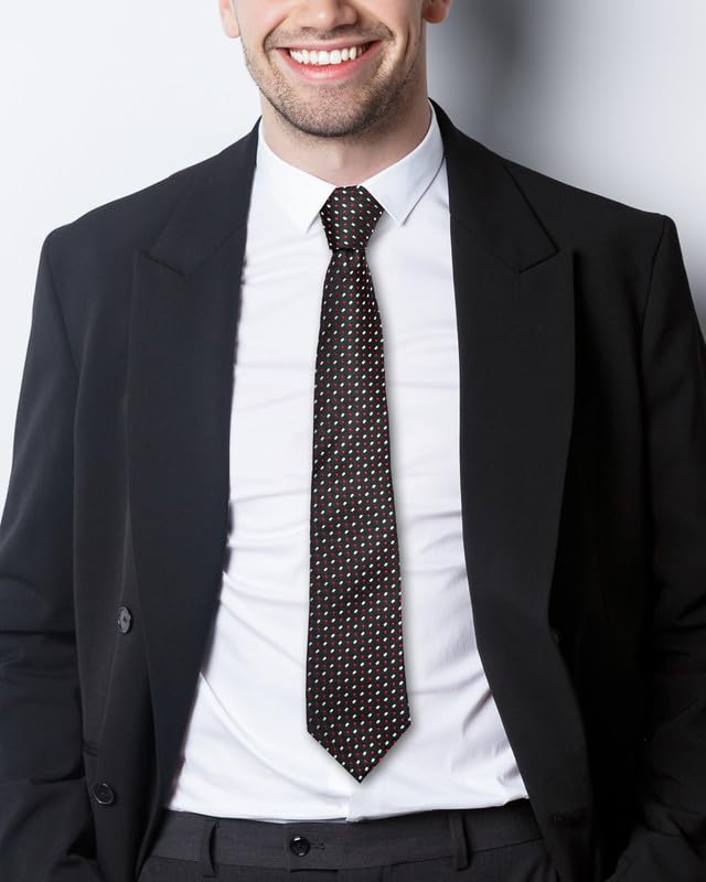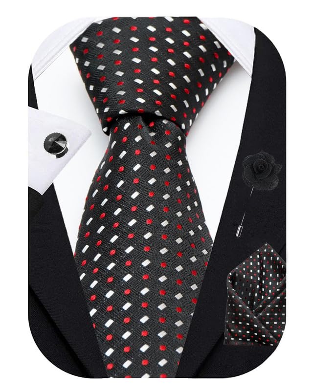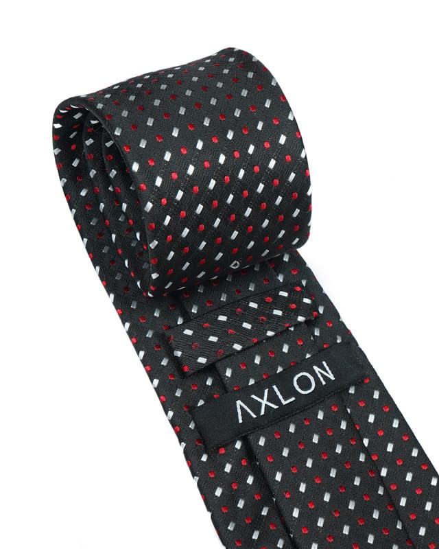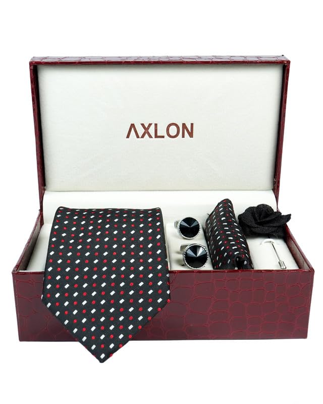 AXLON Geometric Tie For Men – Formal Ties Set With Pocket Square, Cufflink & Flower Pin With Gift Box For Mens, Silk Fabric Neckties Gift Sets For Men’s (SM)