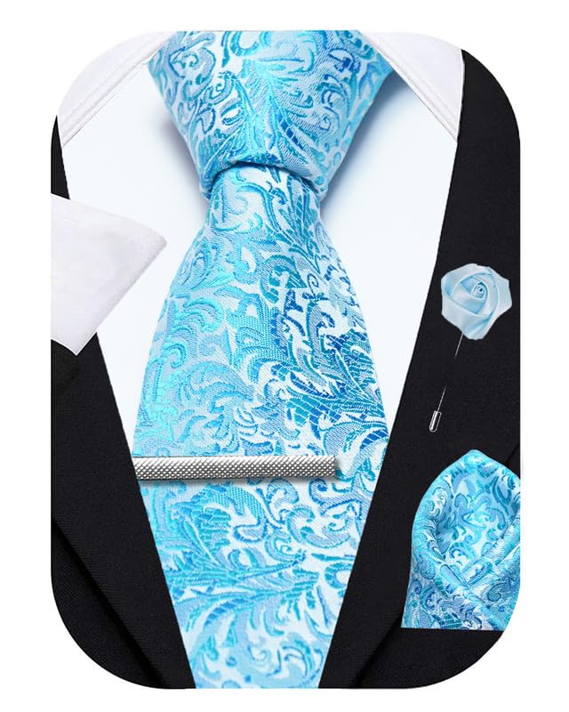 AXLON Pasiley Tie For Men – Formal Ties Set With Pocket Square, Cufflink, Tie Clip & Flower Pin With Gift Box For Mens (AXPAS)