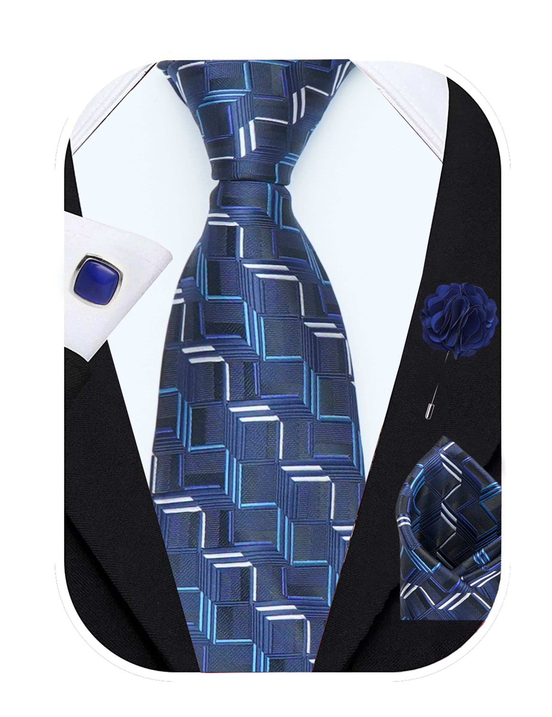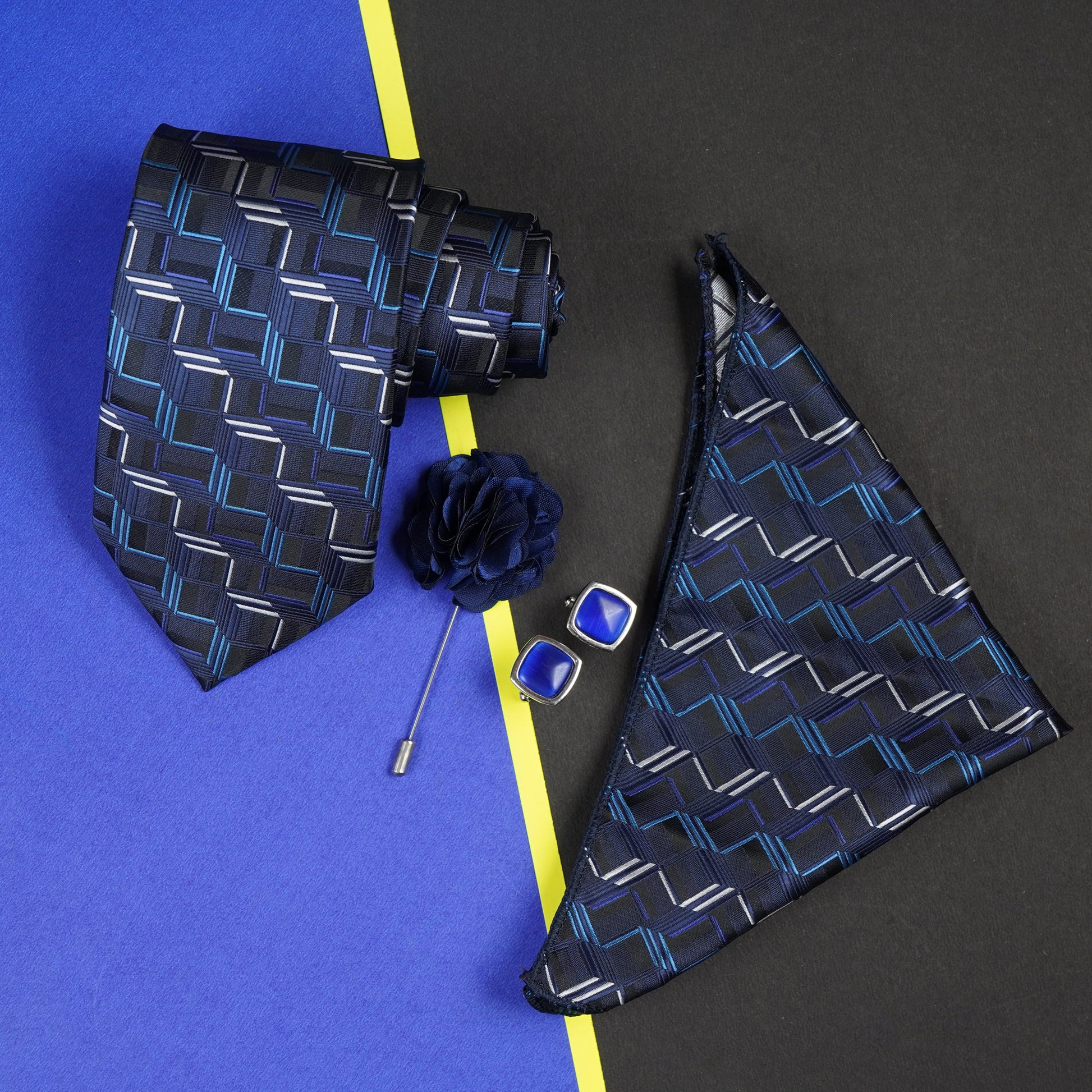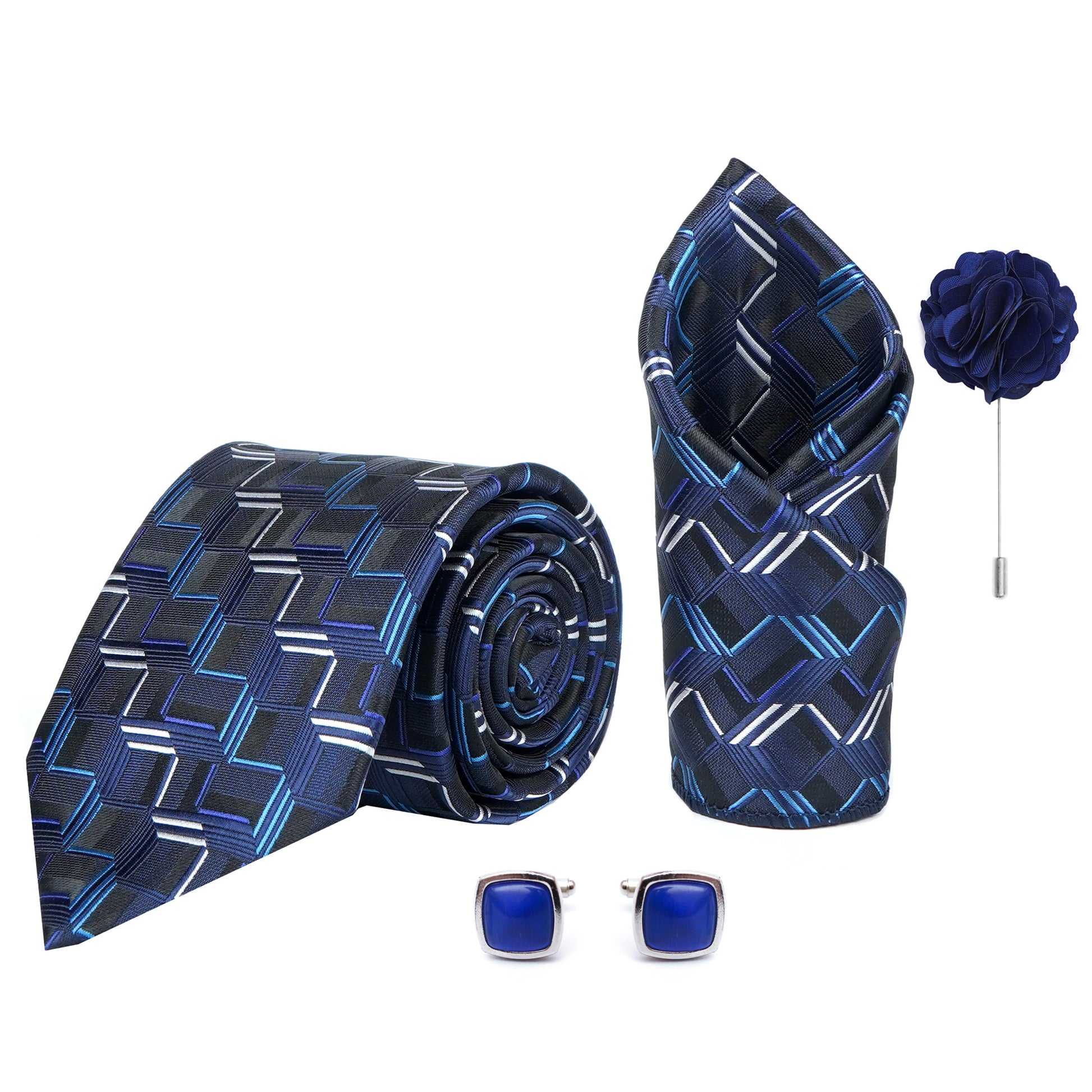 Axlon Men's 3D Stripped Micro Wooven Silk Necktie Gift Set With Pocket Square Cufflinks & Brooch Pin Tie for Men Formal Tie Set with Box