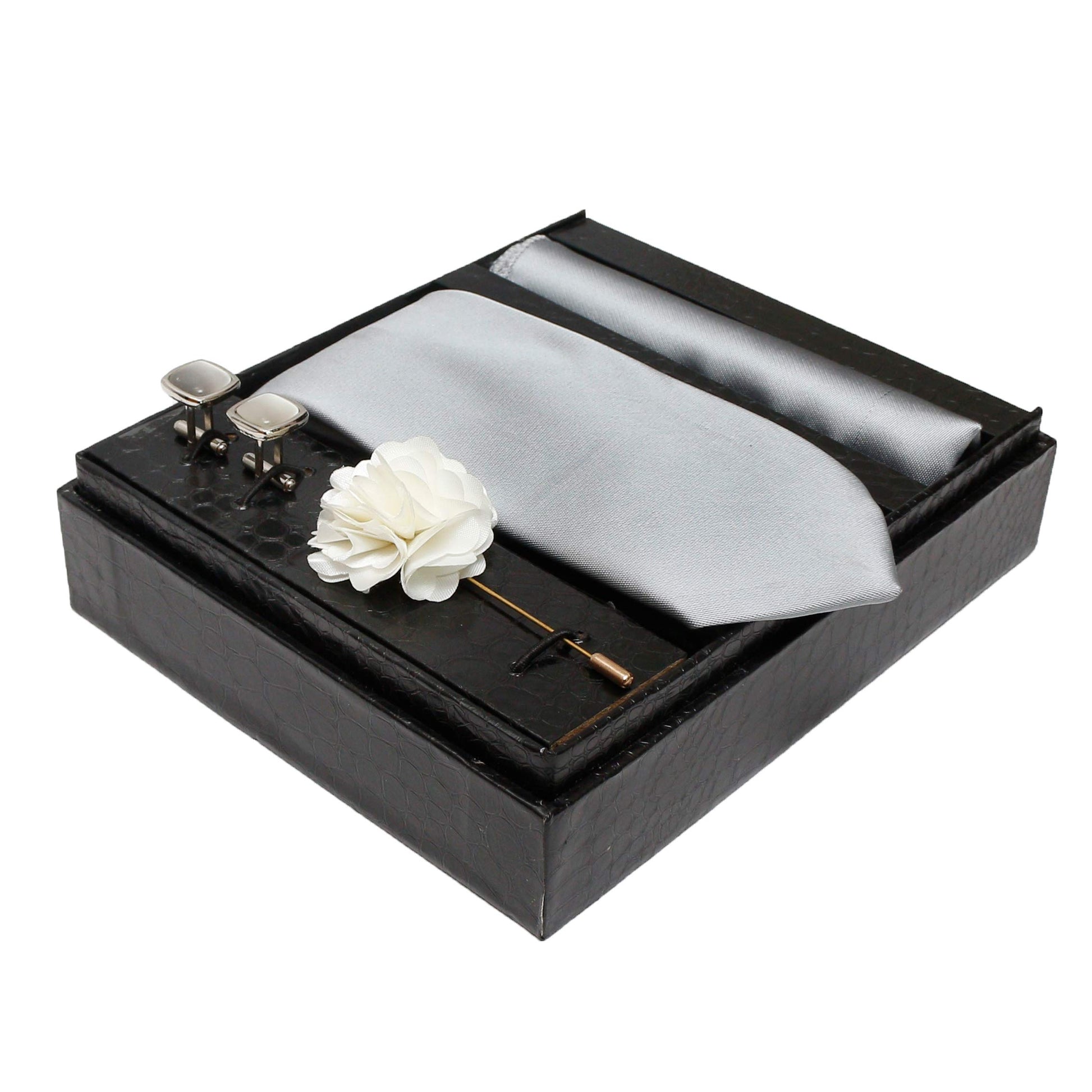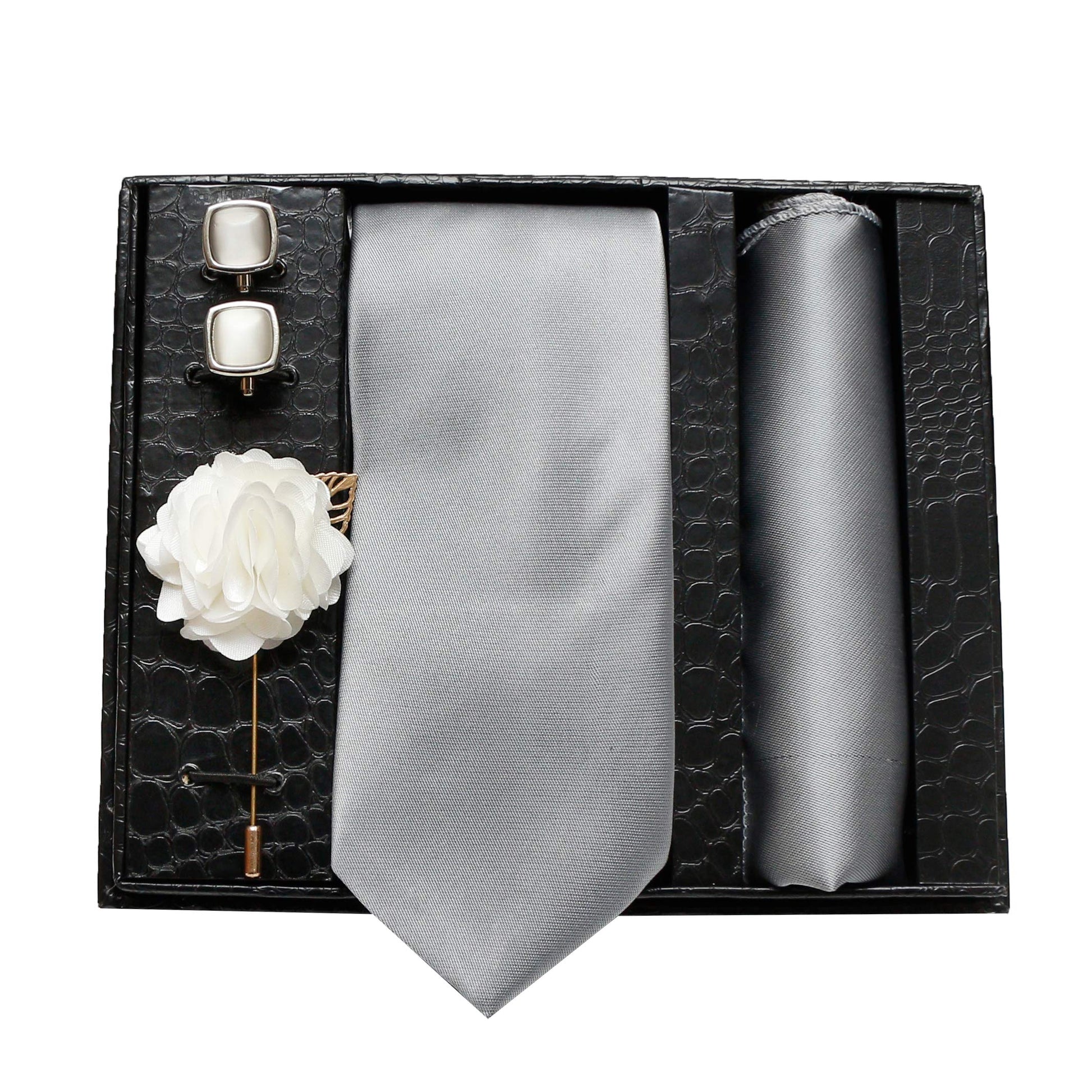 Axlon Men Formal/Casual Micro Silk Neck Tie Pocket Square Accessory Gift Set with Cufflinks and Brooch Pin
