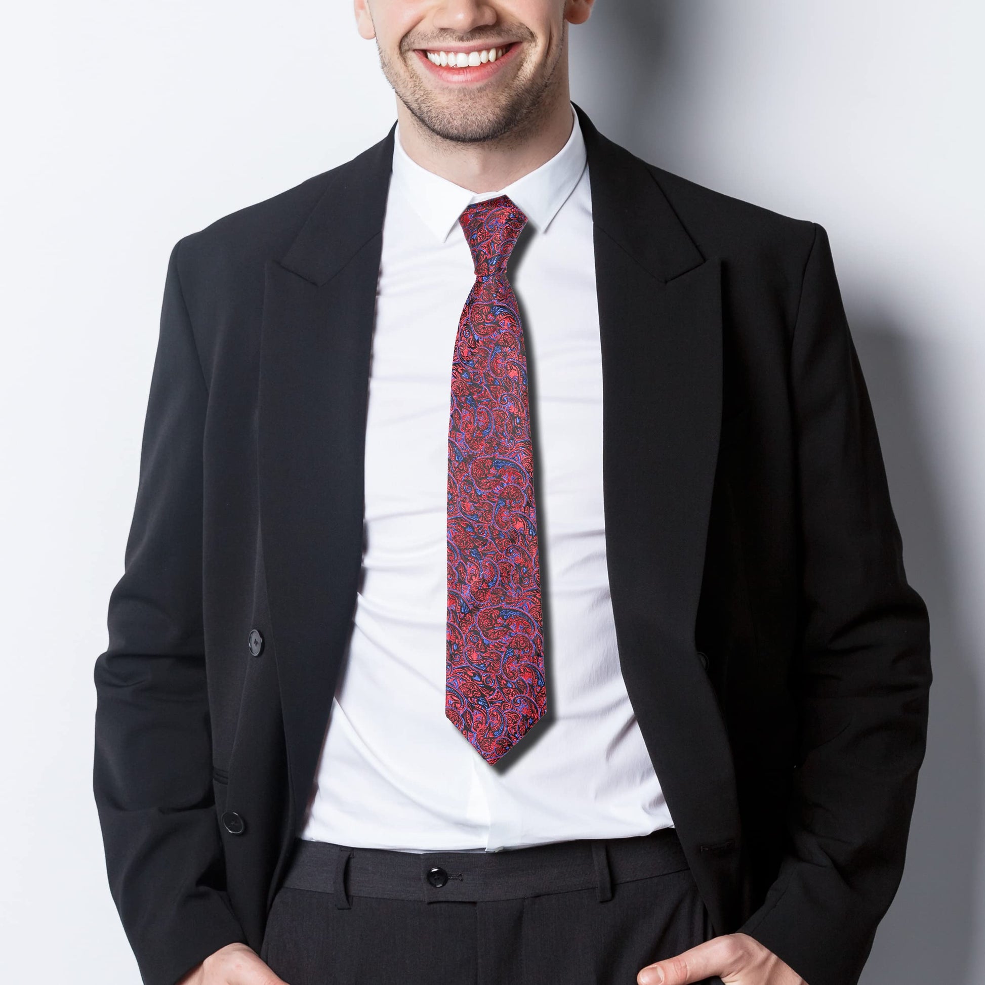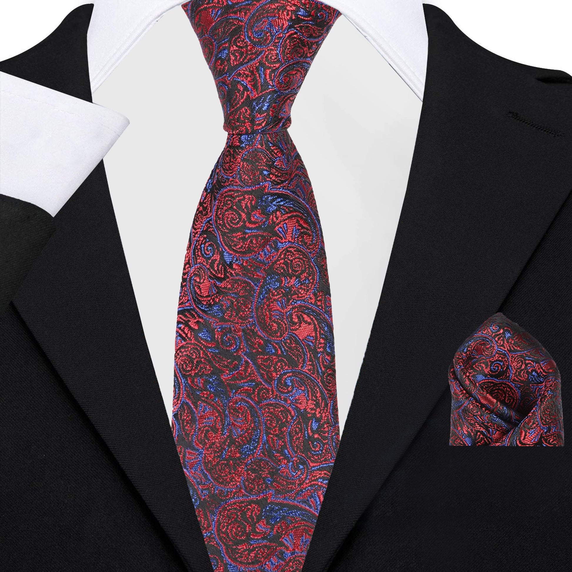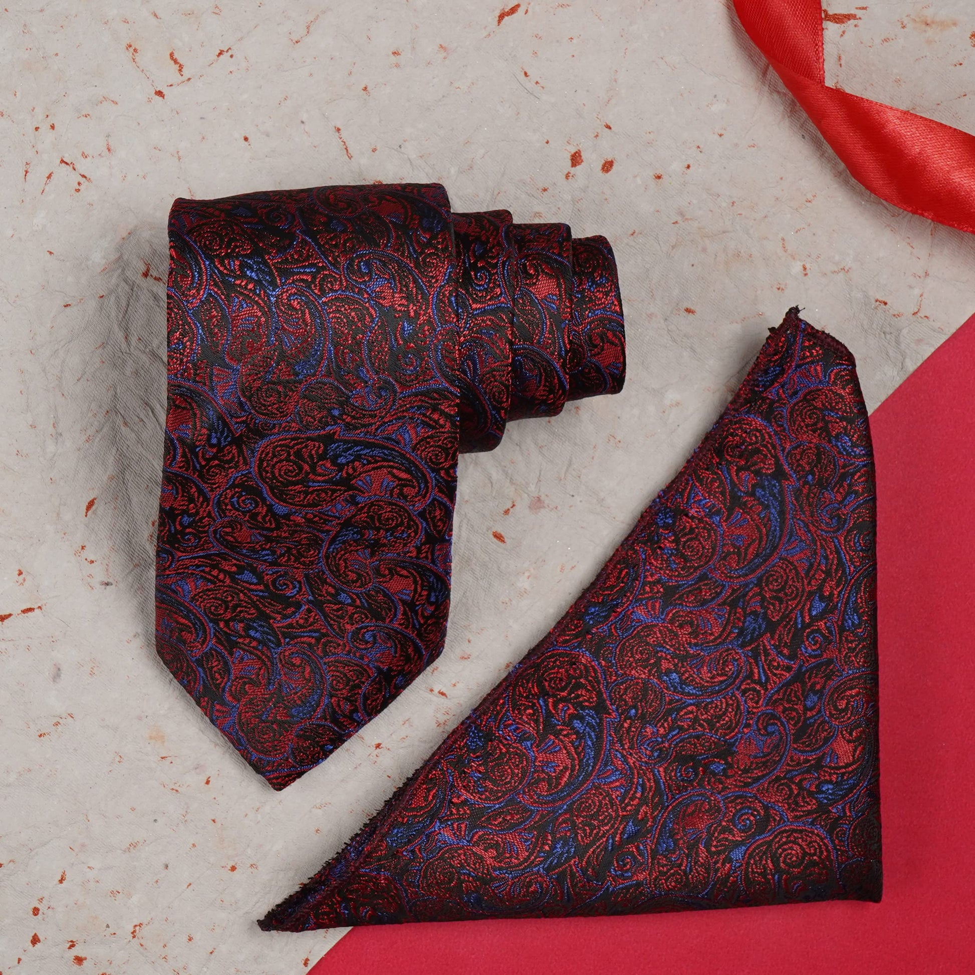 RIZORO Mens Printed Silk Necktie Gift Set With Pocket Square Formal Tie with Box (Free Size) | (Gift Box) (Pack of 2)